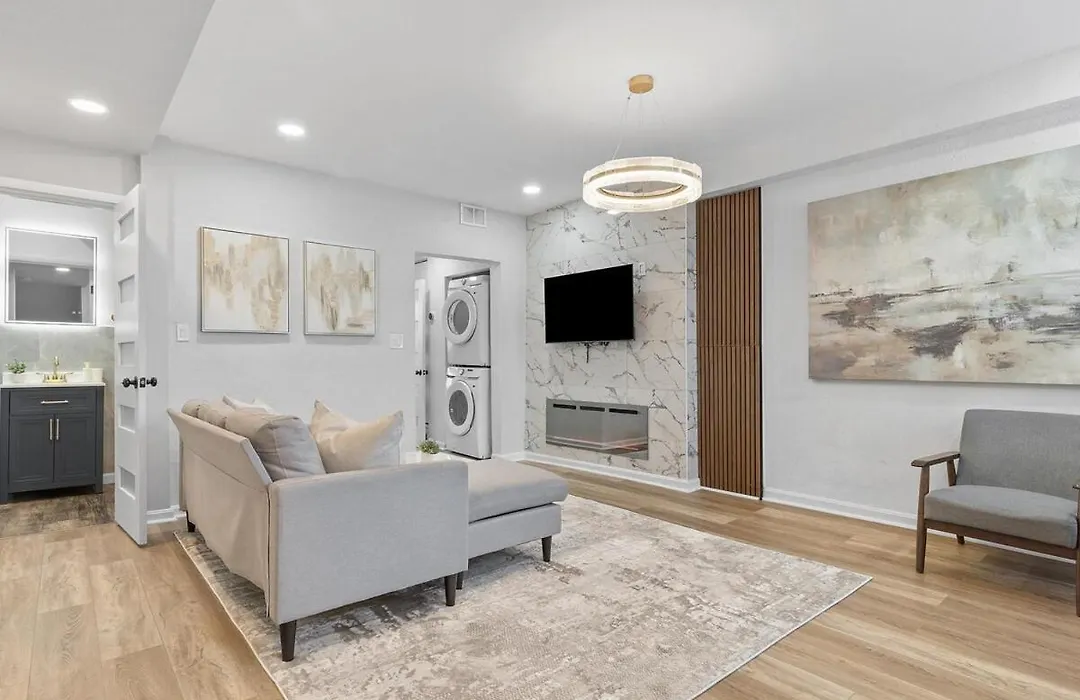 Con vistas al jardín, el apartamento cuenta con una zona de estar y una cocina completa equipada con climatizador y lavadora. El Lawrenceville Central !5 Spacious And Quiet Three Bedroom Apartment With Free Street Parking incluye 3 dormitorios. Los visitantes de la propiedad disfrutarán de la comodidad de un cuarto de baño con secador de pelo y toallas. También encontrarás inodoro separado y ducha.